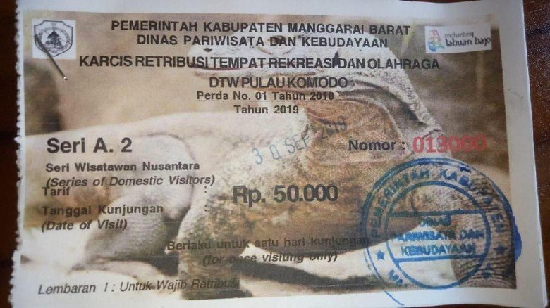 And the last item that you will pay in Komodo National Park is local Goverment Retribution which is IDR. 50.000/person.